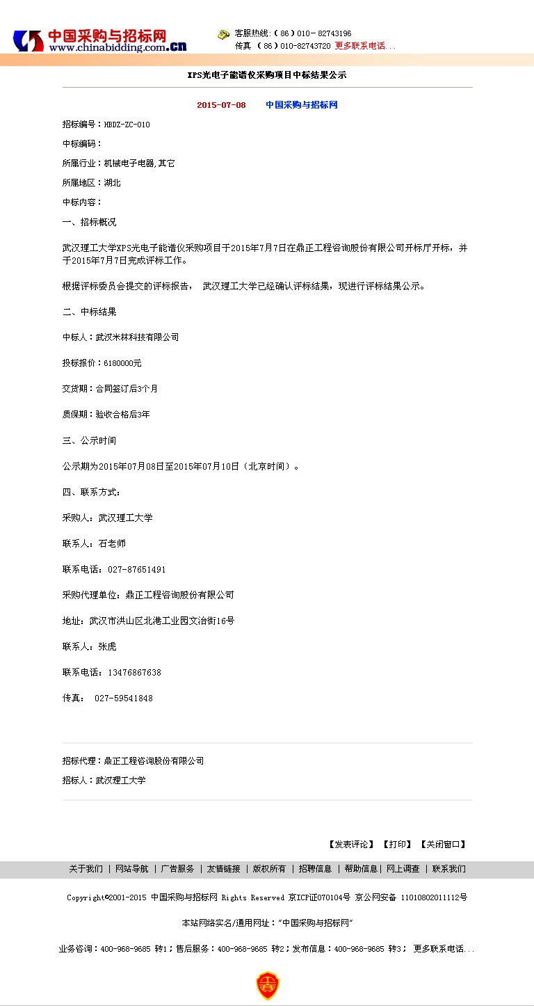XPS光電子能譜儀采購項(xiàng)目中標(biāo)結(jié)果公示
