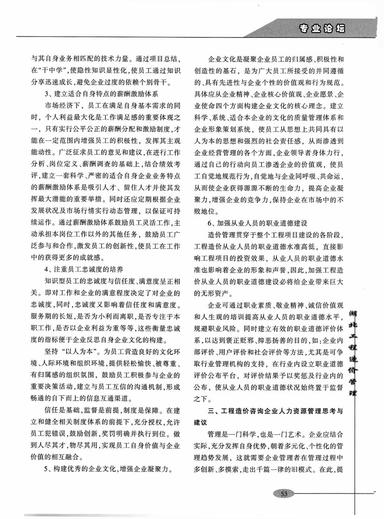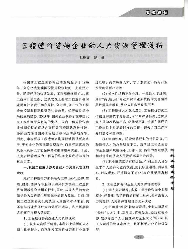 熱烈祝賀我公司員工所著文章《工程造價(jià)咨詢企業(yè)的人力資源管理淺析》在《湖北工程造價(jià)管理》雜志