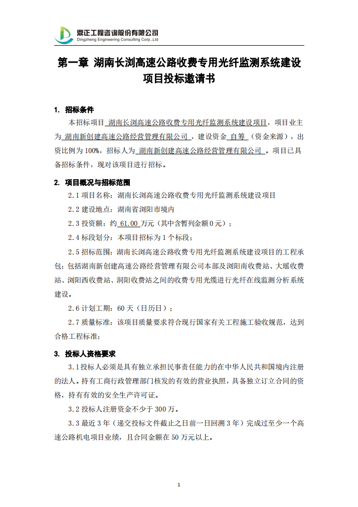 湖南長瀏高速公路收費專用光纖監(jiān)測系統(tǒng)建設(shè)項目投標(biāo)邀請書