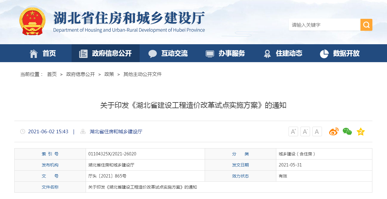 2020年7月24日,住房和城鄉(xiāng)建部辦公廳印發(fā)關(guān)于工程造價(jià)改革工作方案的通知(建辦標(biāo)〔2020〕38號(hào),以下簡(jiǎn)稱(chēng)38號(hào)文),通知決定在北京市、浙江省、湖北省、廣東省、廣西壯族自治區(qū)等五個(gè)地區(qū)開(kāi)展方案試點(diǎn)工作。截至本稿起筆日(2021.6.3),廣西、浙江和湖北等三個(gè)試點(diǎn)地區(qū)相繼發(fā)布有關(guān)方案通知,北京、廣東尚未見(jiàn)官方相關(guān)信息。五個(gè)試點(diǎn)城市外,上海、河南等地的方案在征求意見(jiàn)中。
