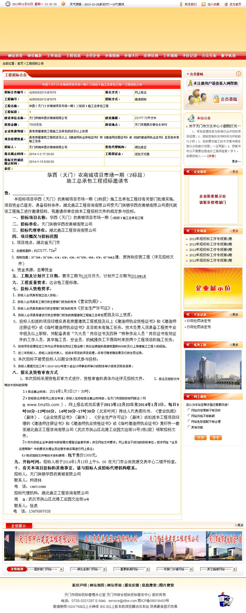 華西(天門(mén))農(nóng)商場(chǎng)項(xiàng)目市場(chǎng)一期(二標(biāo)段)施工總承包工程