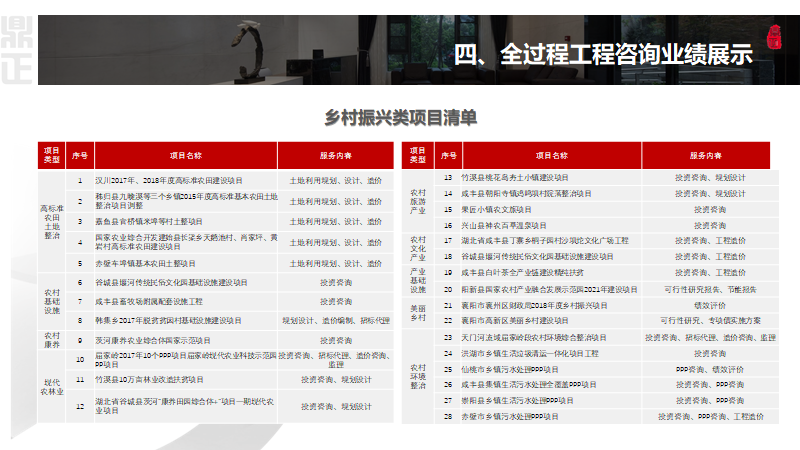 鼎正始終踐行“以全過程工程咨詢及PPP全生命周期咨詢服務(wù)為先導(dǎo)、以投資管控為主線、以項(xiàng)目增值為目標(biāo)”的一站式工程咨詢服務(wù)理念,積極探索參與鄉(xiāng)村振興的領(lǐng)域與路徑,緊跟鄉(xiāng)村振興新動向,充分發(fā)揮工程咨詢企業(yè)高智力支撐作用,干出工程咨詢新作為!