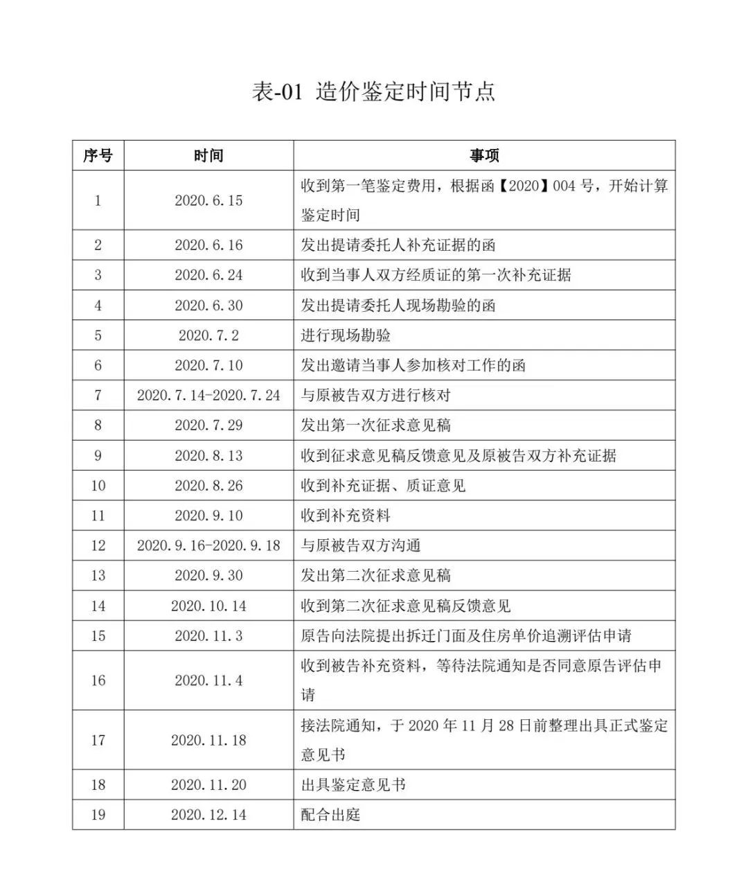案例項(xiàng)目的造價鑒定中,時間節(jié)點(diǎn)詳表-01。