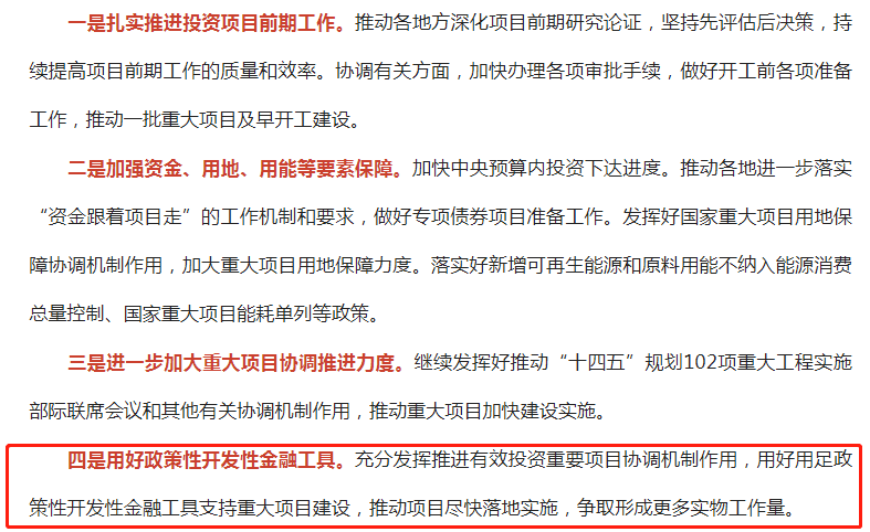 資本金貸款的使用方式:一是補充投資重大項目資本金,不超過全部資本金的50%;二是對于短期內專項債券作為資本金無法到位的,可以為專項債券搭橋,通過金融工具的支持,能夠快速精準打通資本金無法到位造成的堵點,推動項目盡早開工,盡快形成實物工作量,助力穩(wěn)定宏觀經(jīng)濟大盤。
