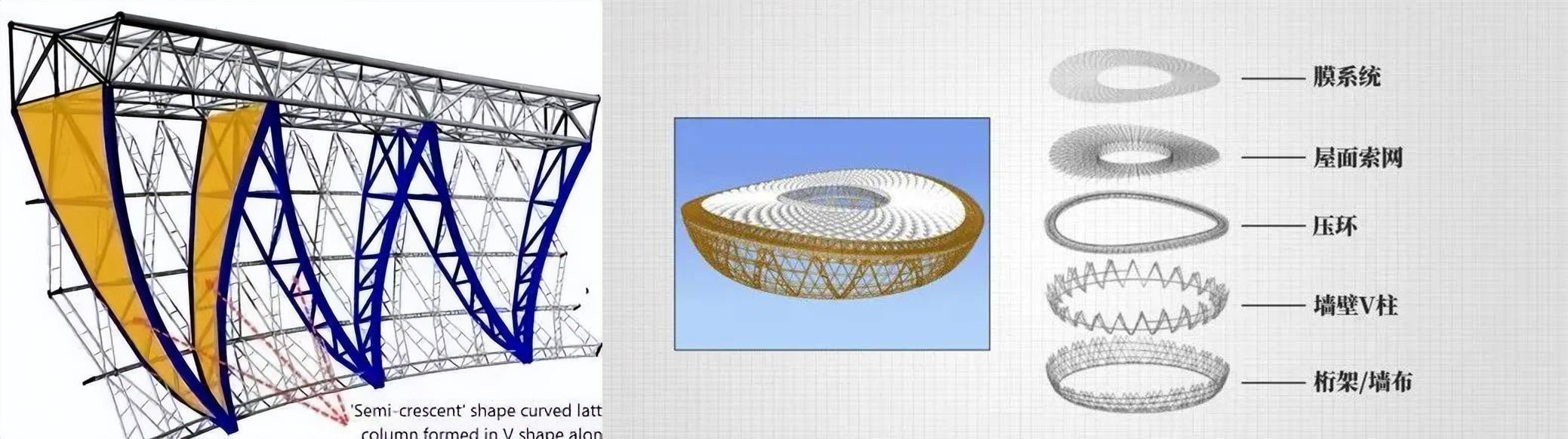 盧賽爾體育館是全球最大跨度雙層交叉索網(wǎng)屋面單體建筑,并且有著世界上最復(fù)雜的索膜結(jié)構(gòu)體系,屋面索網(wǎng)結(jié)構(gòu)跨度達(dá)274米,鋼結(jié)構(gòu)高空吊裝最大的單體重達(dá)450噸,懸挑距離為76米,項目包含30多個專業(yè)大類,45個專項設(shè)計,99個電子系統(tǒng),可以說是目前為止專業(yè)接口最多、技術(shù)最先進(jìn)的體育場館。