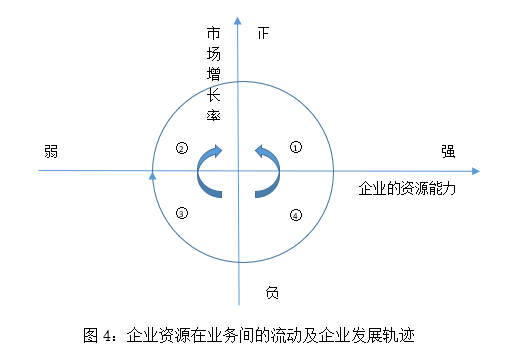 業(yè)務(wù)開始都是企業(yè)資源能力較弱,市場(chǎng)增長(zhǎng)率很強(qiáng),企業(yè)會(huì)注入資源;然后業(yè)務(wù)的企業(yè)能力變強(qiáng),市場(chǎng)增長(zhǎng)率會(huì)很高,企業(yè)繼續(xù)投入資源。但過(guò)了高增長(zhǎng)期之后,該業(yè)務(wù)的增長(zhǎng)率會(huì)降低,降低的原因是由于市場(chǎng)競(jìng)爭(zhēng)者增多導(dǎo)致的。如果企業(yè)處于比較劣勢(shì)的地位,那么業(yè)務(wù)就會(huì)處于負(fù)增長(zhǎng),企業(yè)就應(yīng)從中抽取資源投入有潛力或增長(zhǎng)趨勢(shì)正強(qiáng)勁的業(yè)務(wù)。該業(yè)務(wù)的企業(yè)能力隨著資源的逐漸減少,業(yè)務(wù)能力弱化,企業(yè)進(jìn)入第三象限,直至該業(yè)務(wù)消亡。