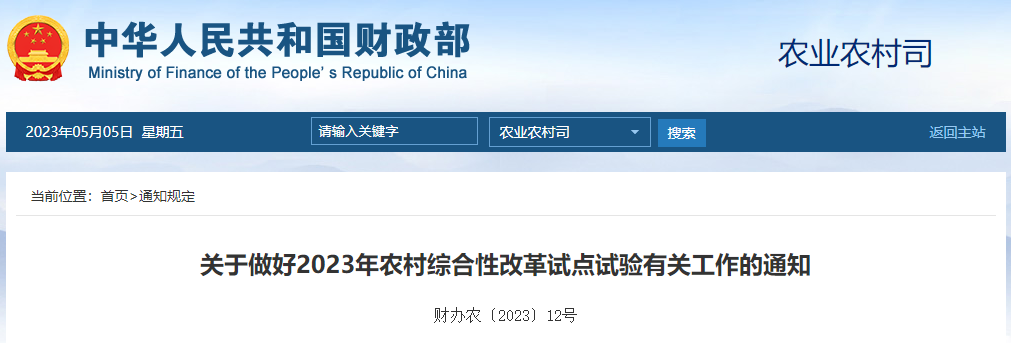 為深入貫徹黨的二十大精神,認(rèn)真落實(shí)2023年中央一號文件“深化農(nóng)村改革”、“深入推進(jìn)農(nóng)村綜合改革試點(diǎn)示范”的任務(wù)要求和中共中央、國務(wù)院印發(fā)的《數(shù)字中國建設(shè)整體布局規(guī)劃》部署,在總結(jié)前期試點(diǎn)經(jīng)驗(yàn)的基礎(chǔ)上,2023年中央財政繼續(xù)支持實(shí)施并啟動新的農(nóng)村綜合性改革試點(diǎn)試驗(yàn)(以下簡稱試點(diǎn))。現(xiàn)就有關(guān)工作通知如下。