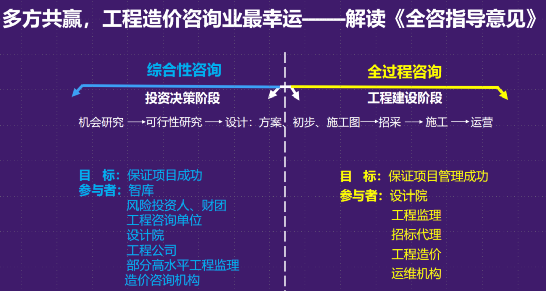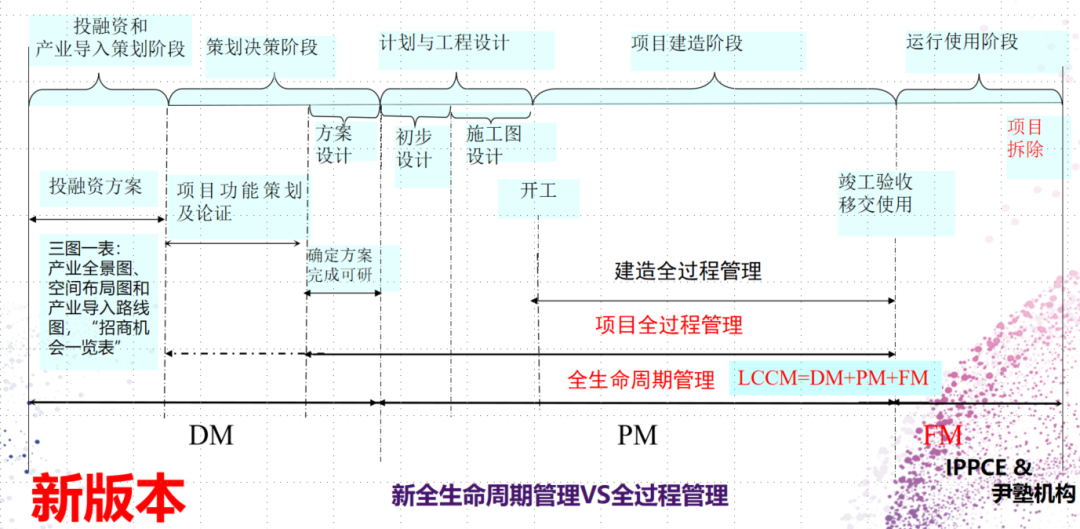 在總書記全生命周期管理思想的指導(dǎo)下,中國的“全咨”已經(jīng)由“全過程工程咨詢”過渡到“全生命周期工程咨詢”,進入了全咨3.0時代。全咨3.0要點是全咨邊界向前擴展到“招商引資”,向后延伸至“運營維護”。