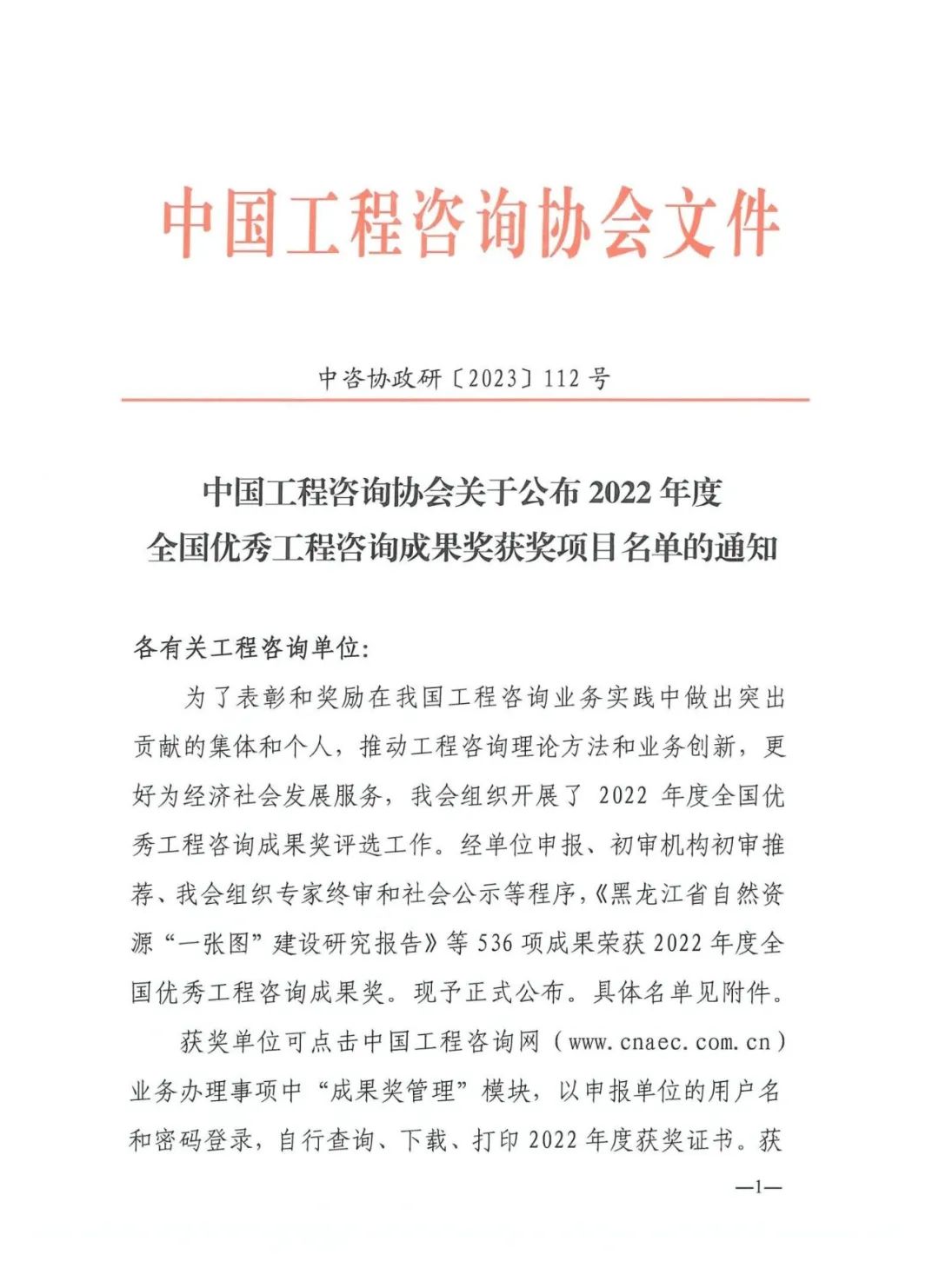 “全國優(yōu)秀工程咨詢成果獎”是中國工程咨詢協(xié)會組織的全國性咨詢成果評獎,旨在表彰和獎勵在我國工程咨詢業(yè)務(wù)實(shí)踐中做出突出貢獻(xiàn)的集體和個(gè)人,推動工程咨詢理論方法和業(yè)務(wù)創(chuàng)新,更好為經(jīng)濟(jì)社會發(fā)展服務(wù)。