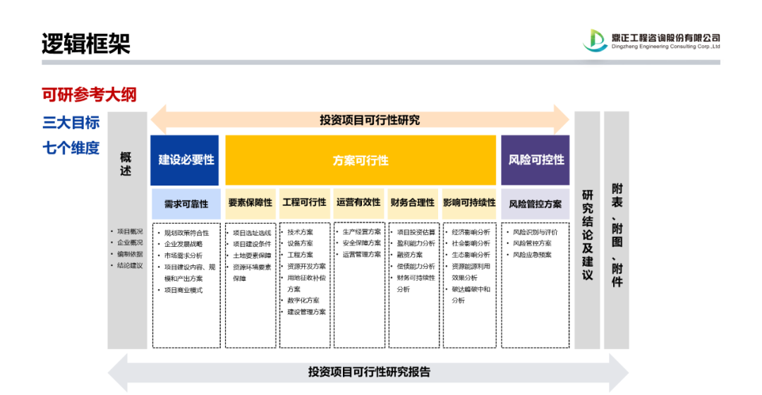 《可行性研究報(bào)告編制大綱(2023年版)》的頒布實(shí)施,對于我國新時(shí)代投資項(xiàng)目科學(xué)決策、推動實(shí)現(xiàn)高質(zhì)量投資具有里程碑意義,鼎正作為一家綜合性咨詢企業(yè),多年來深度服務(wù)湖北省及下屬多個(gè)縣市區(qū)的經(jīng)濟(jì)建設(shè),在全過程工程咨詢、投融資咨詢、專項(xiàng)債咨詢、國債咨詢、PPP咨詢等,積累了良好的理論基礎(chǔ)與品牌口碑,并從咨詢實(shí)踐中摸索出一套“向前、向后、向綠色”的高質(zhì)量咨詢產(chǎn)品線,能夠提供高質(zhì)量全方位的咨詢服務(wù)。