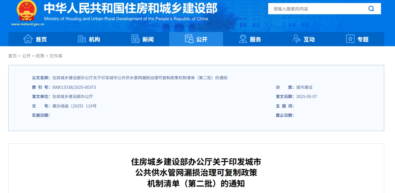 為加強(qiáng)城市公共供水管網(wǎng)漏損治理,健全長效機(jī)制,近日,住房城鄉(xiāng)建設(shè)部、國家發(fā)展改革委遴選了50個(gè)城市和縣城重點(diǎn)推進(jìn),梳理形成了城市公共供水管網(wǎng)漏損治理可復(fù)制政策機(jī)制清單(第二批)。