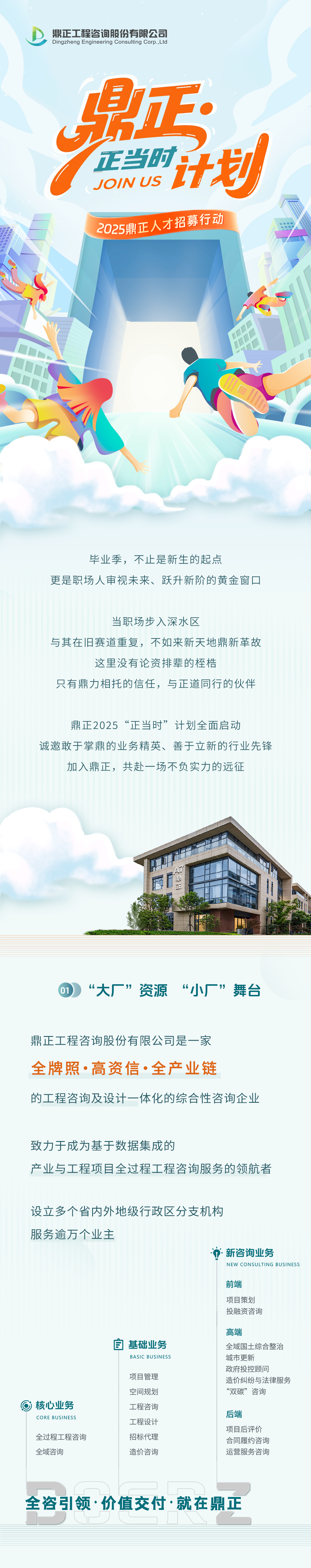 鼎正工程咨詢有限公司成立于2006年5月,公司具有工程咨詢、項目管理、工程造價咨詢、工程招標代理、土地規(guī)劃設(shè)計等多項專業(yè)咨詢資質(zhì)...