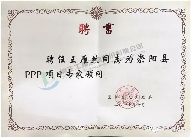 會中,崇陽縣人民政府為王雁然先生頒發(fā)崇陽縣PPP項(xiàng)目專家顧問聘書,負(fù)責(zé)指導(dǎo)崇陽縣PPP工作。