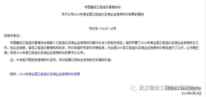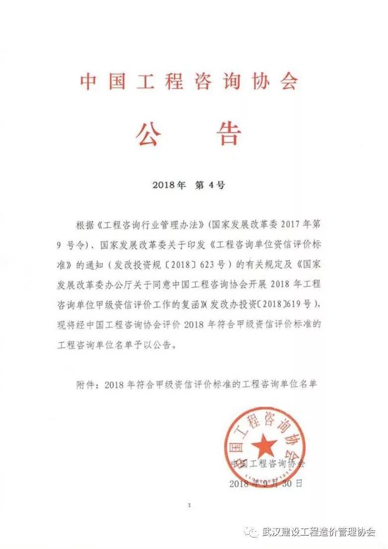 2018年9月19日,中國建設工程造價管理協會發(fā)布了“2018年度全國工程造價咨詢企業(yè)信用評價結果”,此次湖北省僅有22家工程造價咨詢單位獲得AAA信用評級,我司從全國眾多參評單位中脫穎而出,獲此榮譽。