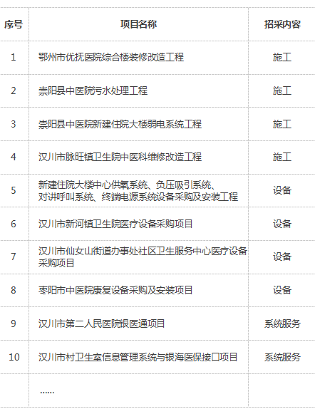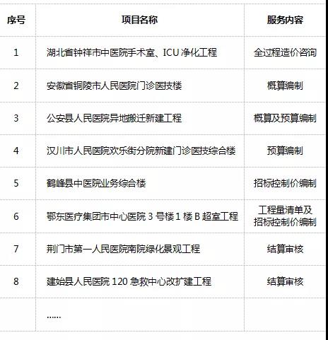 醫(yī)療衛(wèi)生招采項(xiàng)目典型業(yè)績(jī)表