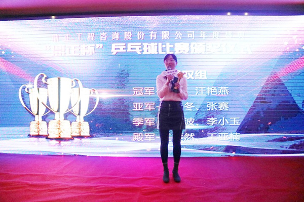 隨后,頒獎典禮正式開始。首先進行的是鼎正咨詢歷屆傳統(tǒng)環(huán)節(jié)第七屆“鼎正杯”乒乓球比賽頒獎儀式。鼎正運動健兒們在本屆乒乓球比賽中盡情揮灑著激情與汗水,充分展現(xiàn)了鼎正人團結向上、自強不息的精神風貌。