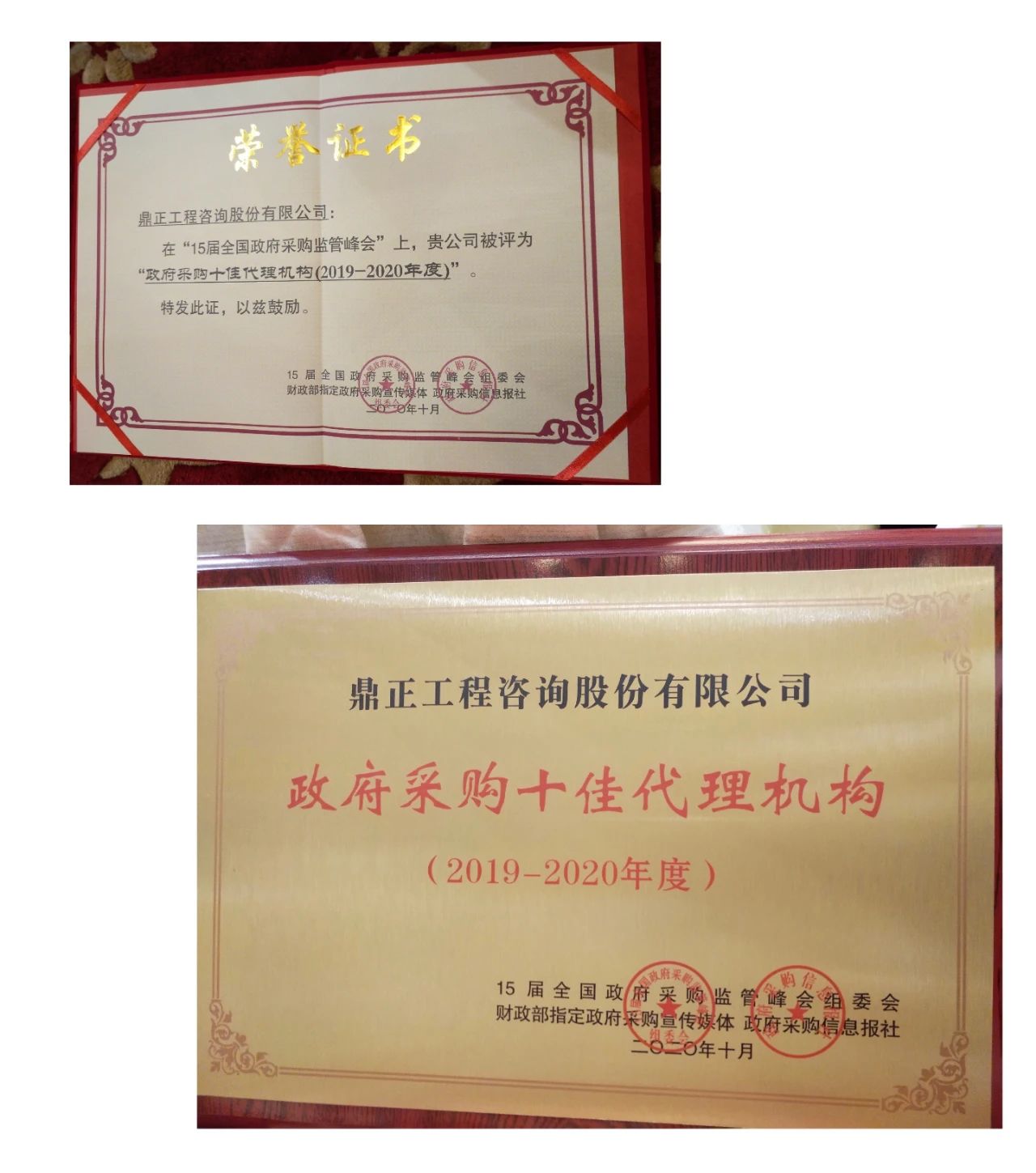 鼎正印記 | 熱烈慶祝我司榮獲全國政府采購十佳代理機構(gòu)