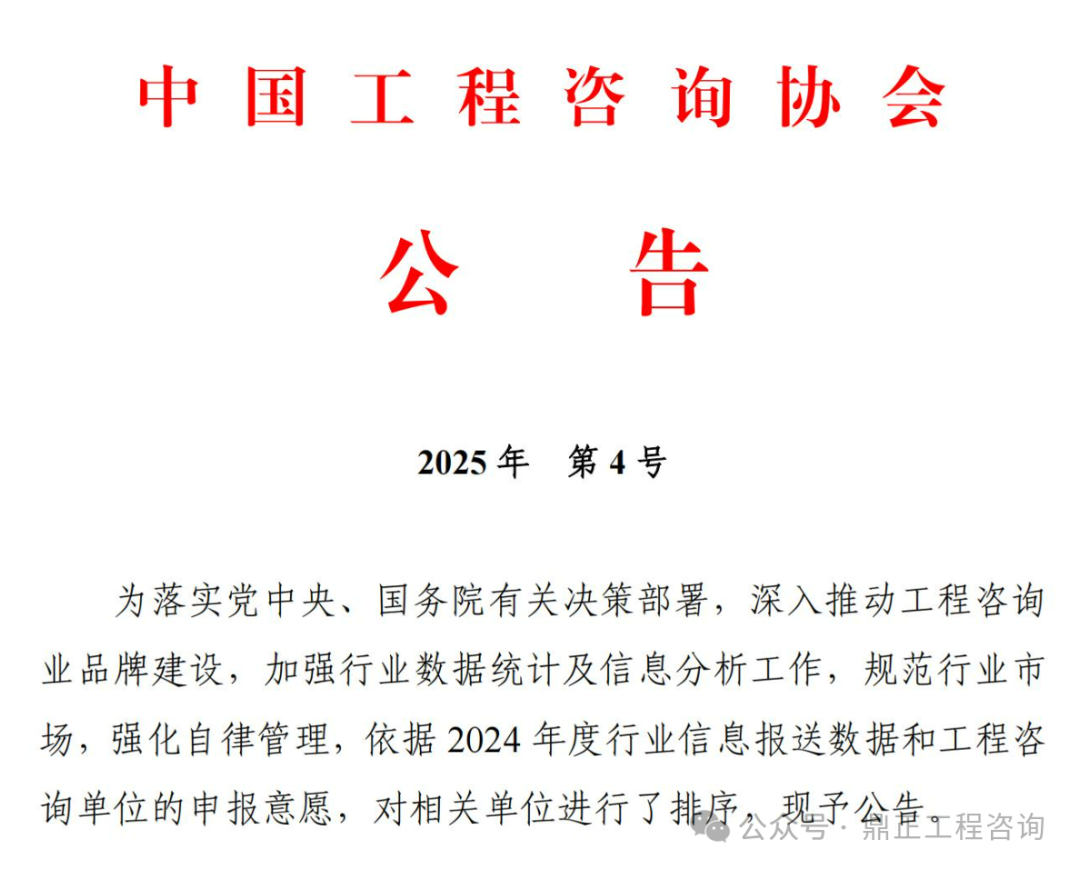 為進(jìn)一步推動工程咨詢行業(yè)品牌建設(shè),規(guī)范行業(yè)行為、提高自律管理,8月21日,中國工程咨詢協(xié)會在官網(wǎng)發(fā)布了關(guān)于2024年度工程咨詢單位排序的公告。鼎正憑借穩(wěn)健的經(jīng)營實(shí)力和綜合表現(xiàn),同時(shí)榮登兩項(xiàng)百強(qiáng)榜單,位列“2024工程咨詢單位營業(yè)收入中型企業(yè)100強(qiáng)”第57位,以及“2024工程咨詢單位民營企業(yè)營業(yè)收入100強(qiáng)”第71位!